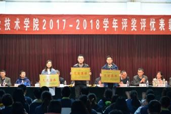 11月12日下午,我校2017-2018学年评奖评优表彰大会在综合楼六楼报告厅隆重举行。院长徐锋、副院长秦越华、副院长刘明生,相关系部处室负责人与近300名获奖集体和获奖学生代表出席大会。大会由副院长秦越华主持。