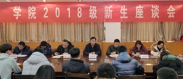 12月11日下午,学院组织召开2018级新生代表座谈会,学院副院长王安雷、学工处处长张韧、各系学生工作负责人和20位各系新生代表参加了座谈。张韧处长主持座谈会。