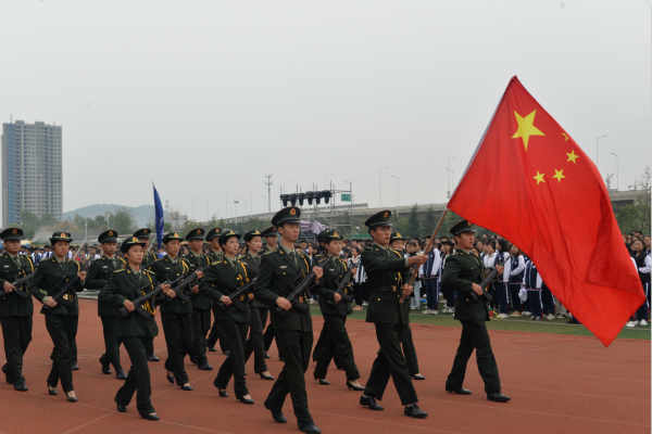 伴随着雄壮的国歌声,五星红旗冉冉升起,高高飘扬在徐州生物工程职业技术学院上空。10月14日,学院王安雷副院长、学工处、各系领导及全体在校生近5000人,在体育场举行隆重而庄严的“庆国庆·升国旗”仪式,进一步激发师生的爱国主义热情,祝福伟大的祖国繁荣昌盛。同时,徐州技师学院学工处韩处长一行5人到我院观摩升旗仪式。
