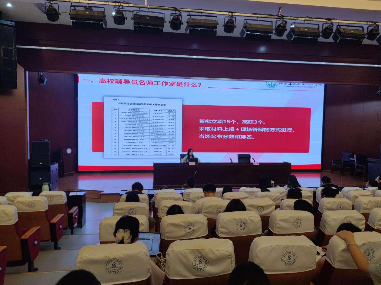 江苏建筑职业技术学院马克思主义学院书记、首批江苏省高校辅导员名师工作室主持人李楠分享了辅导员名师工作室的申报经验与建设思路,为我校辅导员职业化、专家化发展提供了宝贵借鉴。
